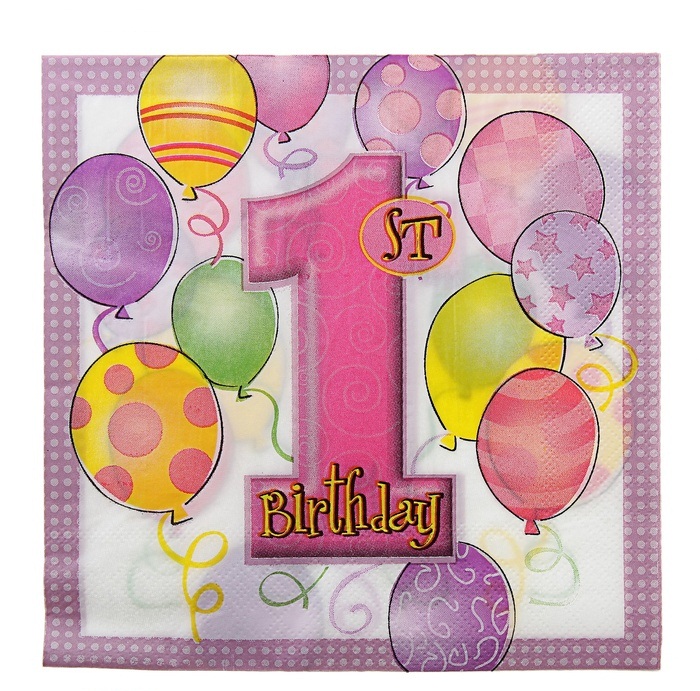 328920 Набор салфеток "1 годик для девочки" ( 20 шт.) Размер 33 * 33 см.