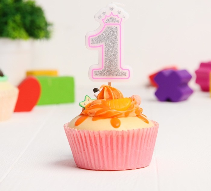 3462535 Свеча в торт "Цифра 1.Серебро с короной" на палочке.Высота 5,5 см.