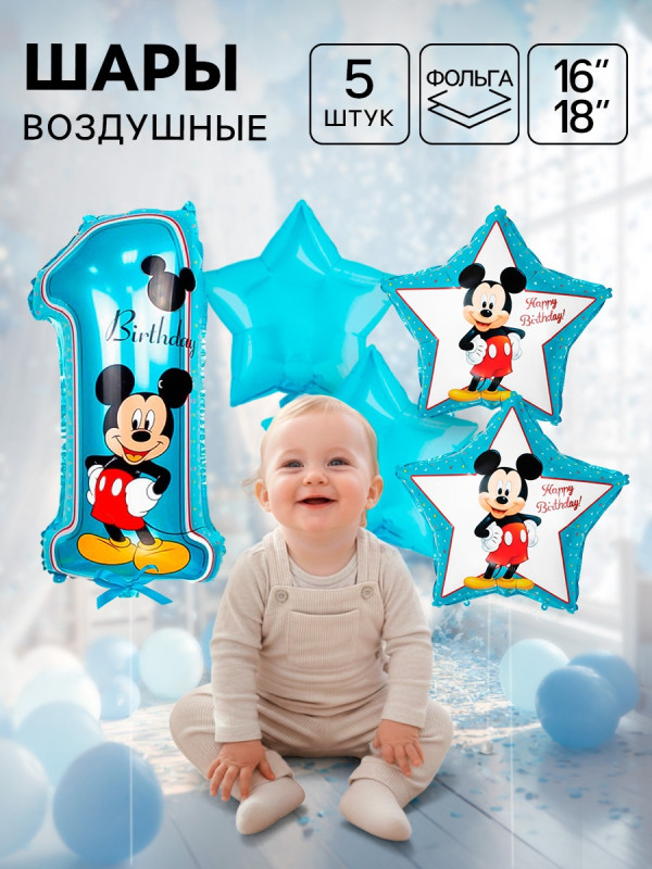 4617340 Набор голубых шаров "Микки Маус": Фольгир.цифра 1 + 4 фольгир. звезды