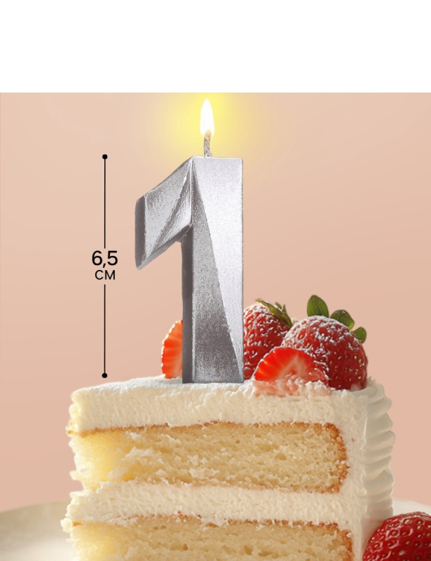 5928495 Свеча в торт "Цифра 1 Серебристый металлик" Высота 6,5 см.