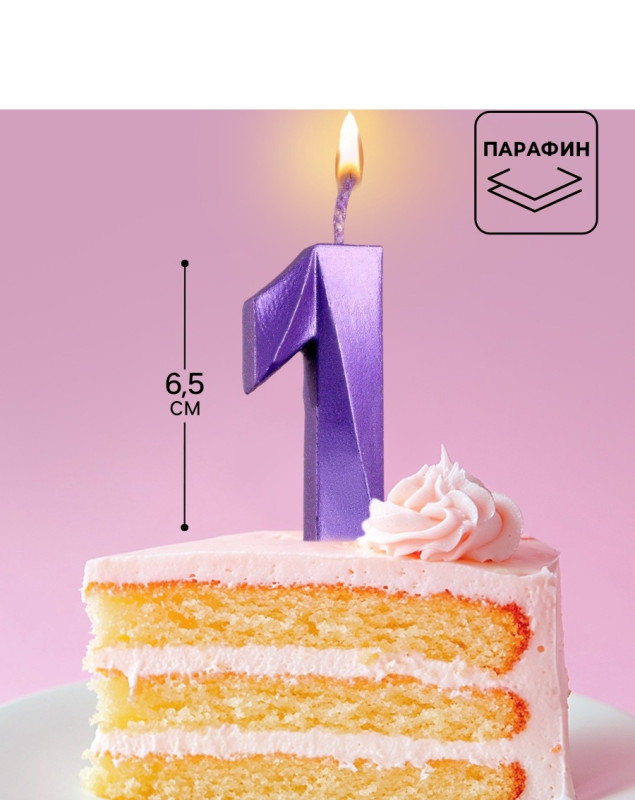 6536350 Свеча в торт "Цифра 1 Фиолетовый металлик" Высота 6,5 см.