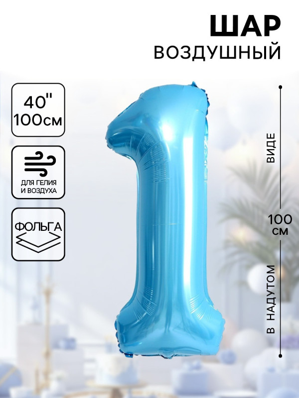 7119143 Голубая фольгированная "Цифра 1" Высота 100 см.
