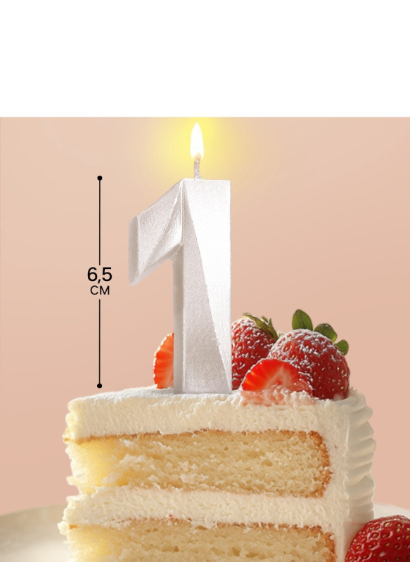 9562151 Свеча в торт "Цифра 1 Жемчужно белая" Высота 7 см.
