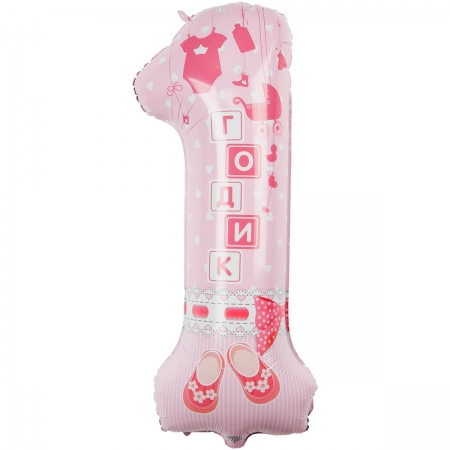 ВЗ 1207-3882 Розовая фольгированная "Цифра 1 Малышка" Высота 102 см. Китай (с гелием)