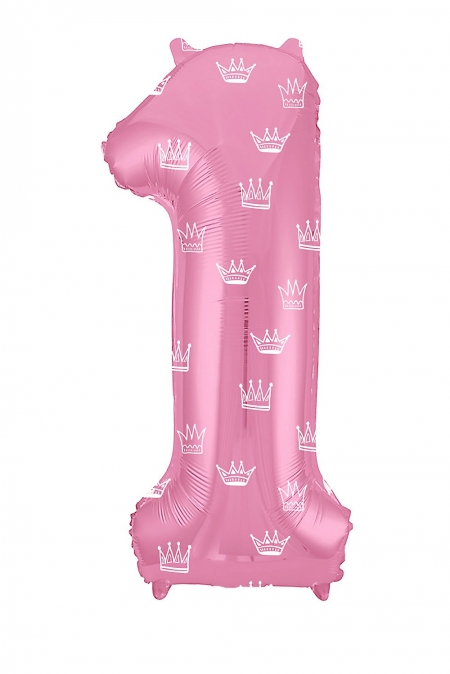 AG 754863 Розовый SLIM с коронами фольгированная "Цифра 1" Высота 102 см. Россия (с гелием)