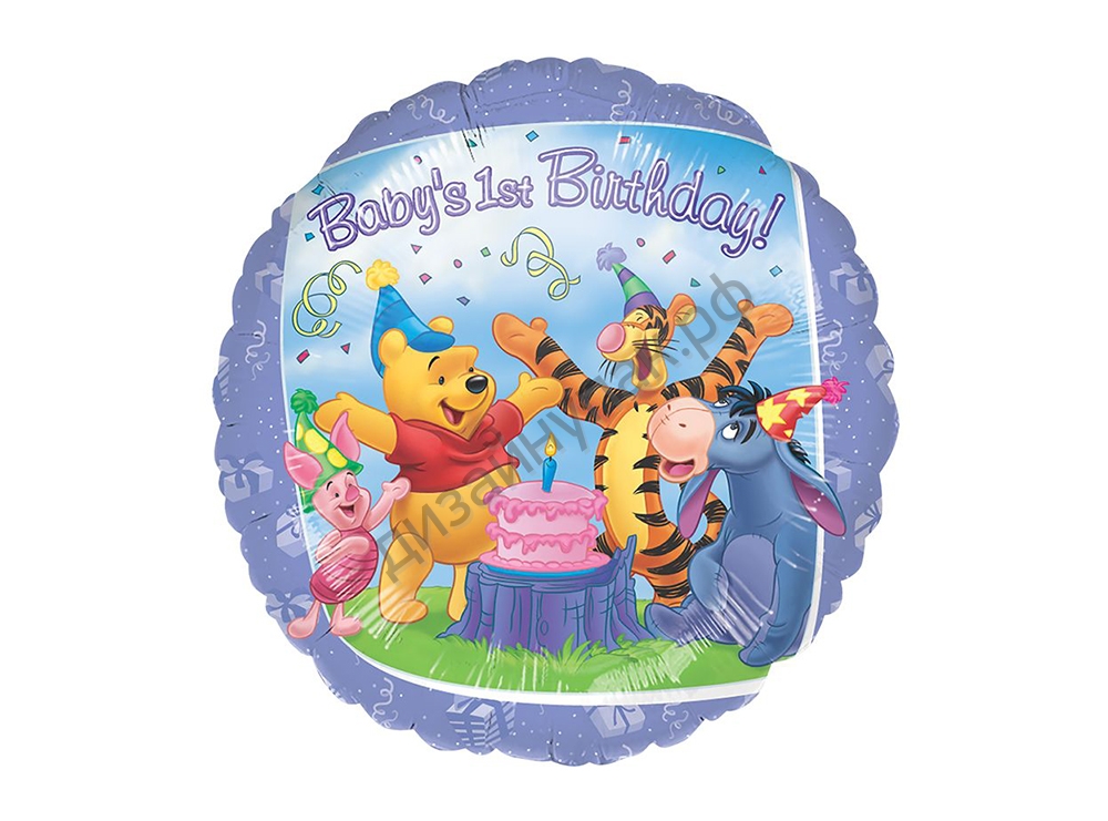 AN 0942702 Фольгированный круг "Первый День рождения! Винни Пух" D 48 см. США ( с гелием)
