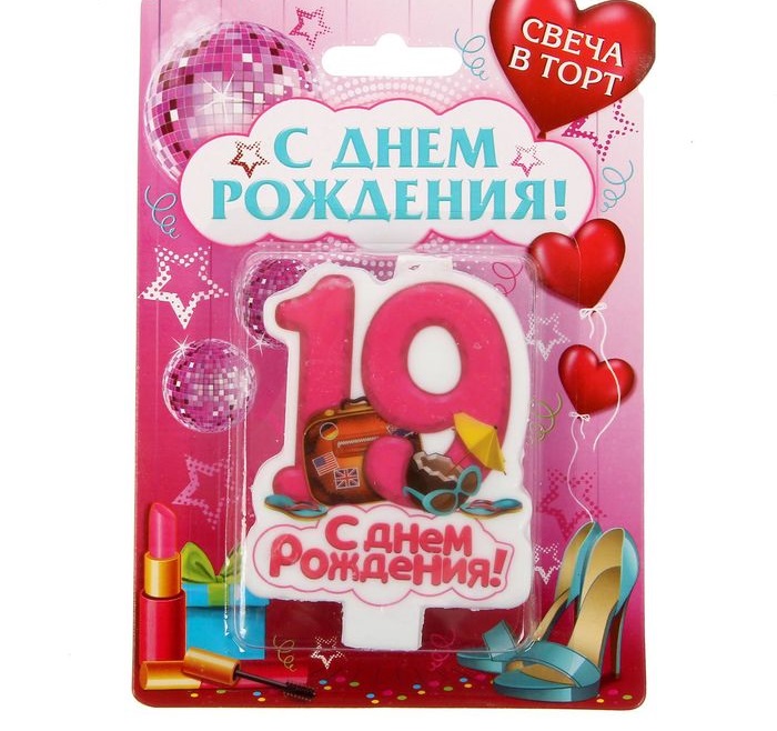 1432835 Свеча для торта "Цифра 19.С Днем рождения" для девочек