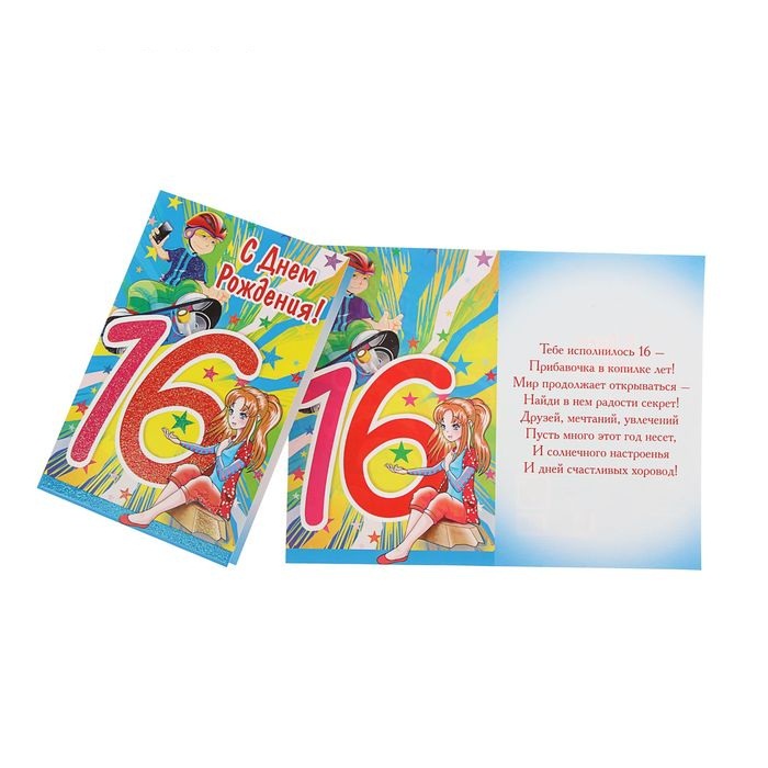 1261329 (32633) Открытка "16 лет. Мальчик и девочка" Формат А5