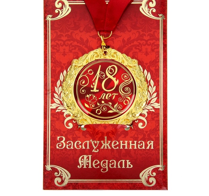 532612 Медаль металл красная "18 лет!" на открытке.Диаметр 6 см.