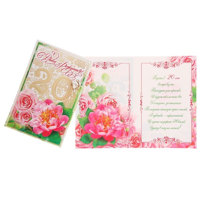 1367715 Открытка "20 лет.Розовые розы" Формат А5