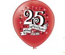 БК 42198/25 Красная пастель 1- сторонний шарик "25 лет... Жизнь прекрасна!" Диаметр 30 см. Тайланд