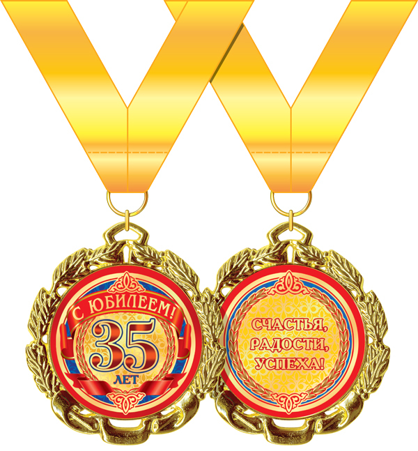 58.53.227 Медаль металл "С Юбилеем 35 лет!" на ленте.Диаметр 6,5 см.