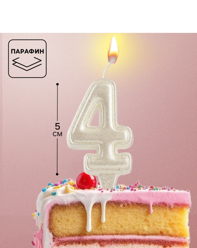 10870119 Свеча в торт "Цифра 4 Жемчужный перламутр" на шпажке Высота 6 см.