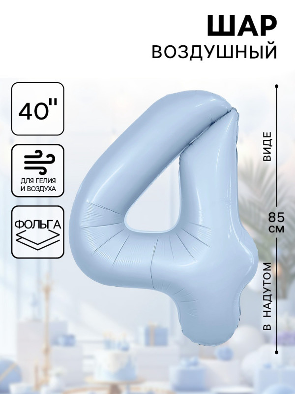 10899041 (АГ 941155) Небесно голубая Slim фольгированная "Цифра 4" Высота 102 см.