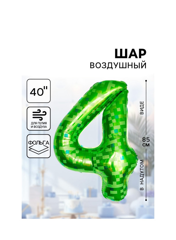 10919688 (ДБ 26904) Зеленая в клетку фольгированная "Цифра 4" Высота 85 см.