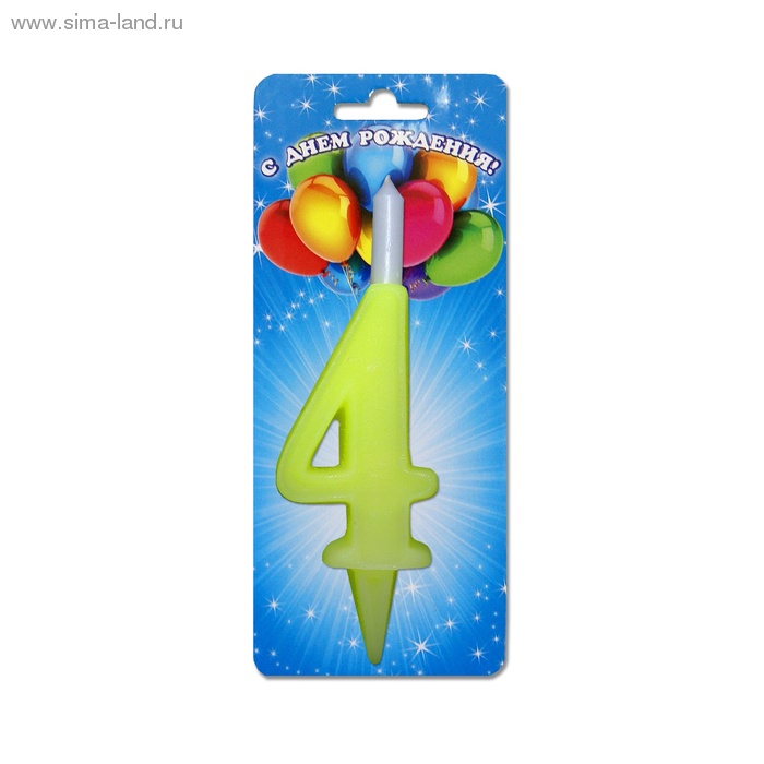 1220072 (3104) Свеча для торта "Цифра 4" Цвет лимонный
