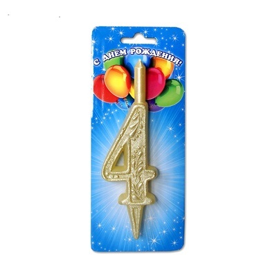 1221544 (3404) Свеча в торт "Цифра 4. Золотой узор"