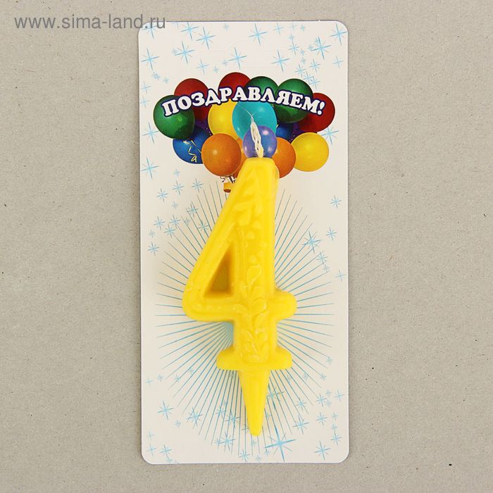 1528448 Свеча для торта "Цифра 4. Желтый узор"