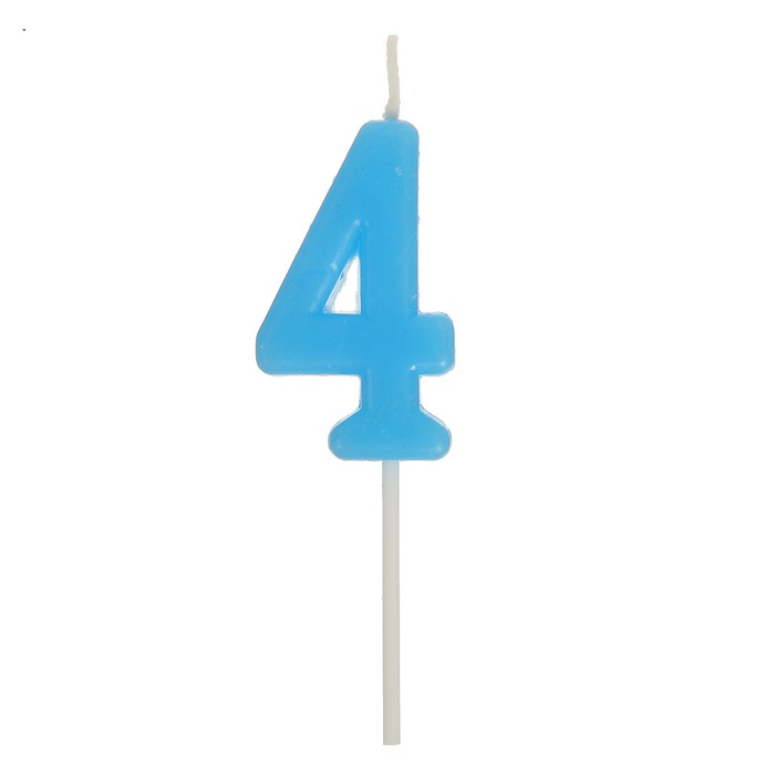 2385811 Свеча в торт "Цифра 4.Голубая" на палочке. Высота свечи 4,5 см.