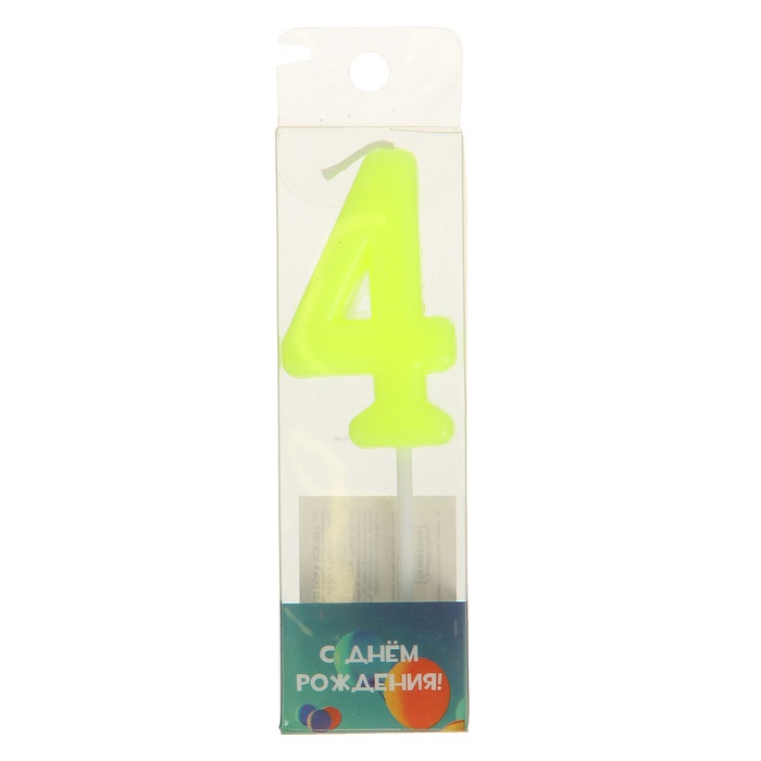 2385820 Свеча в торт "Цифра 4.Желтая" на палочке. Высота свечи 4,5 см.
