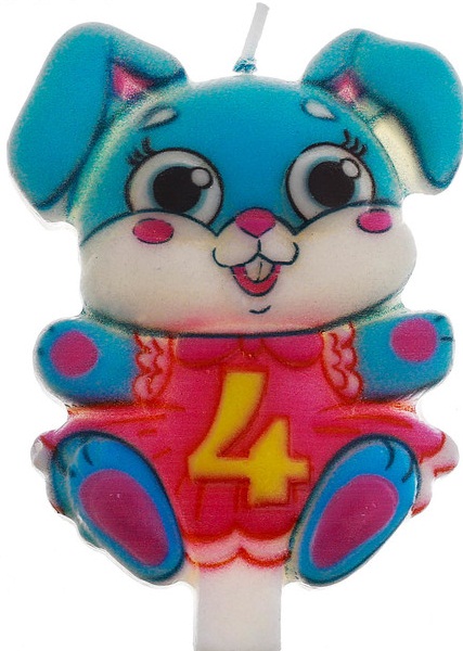 2663283 Свеча в торт "Цифра 4.Зайчик в юбочке" для девочек