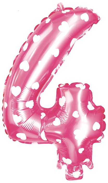 2769730 Розовая с сердечками фольгированная "Цифра 4" Высота 102 см. Китай (под воздух)