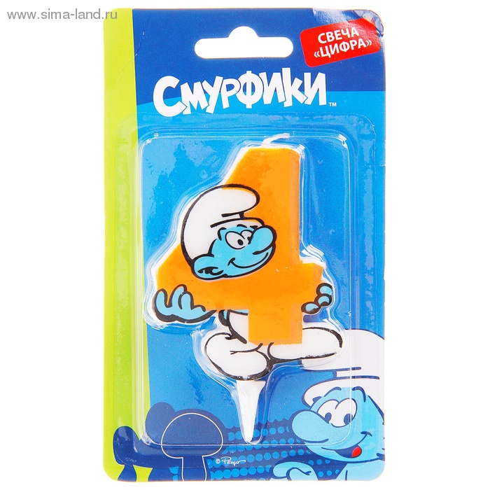 303071 Свеча для торта "Цифра 4. Смурфики"