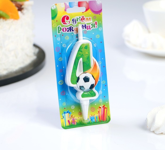3971028 (0654) Свеча в торт "Цифра 4.Футбол"