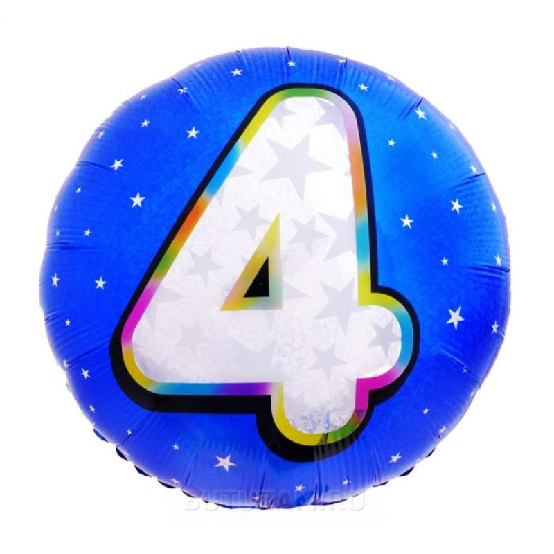 Ч 00014/С Фольгированный круг "Цифра 4. Синий перламутр" D 45 см. (с гелием)