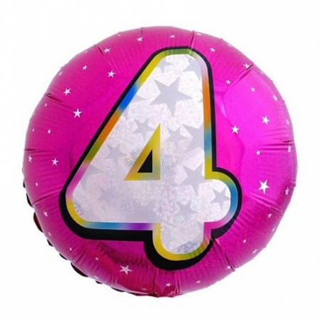 Ч 18194/Р Фольгированный круг "Цифра 4.Розовый перламутр" Диаметр 45 см.Китай