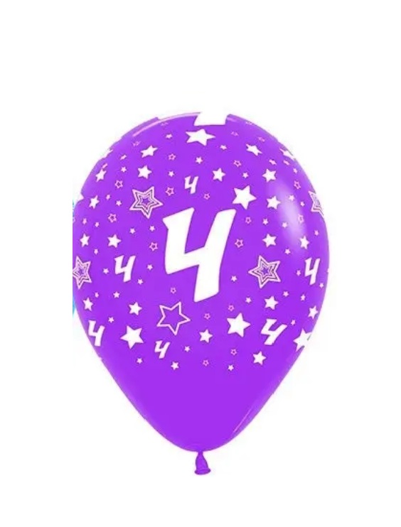 SE 612104/4 Фиолетовый 5-сторонний шарик "Цифра 4: Звезды" D 30 см. (с гелием)