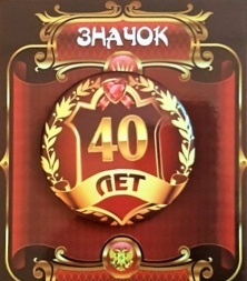 ФГ ZNMET00275 Значок металл "40 лет!" Крепление на булавку. Диаметр 5,5 см.