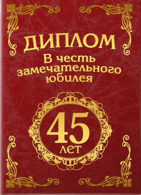 650275 Диплом мужской "С Юбилеем 45 лет!" Формат А6