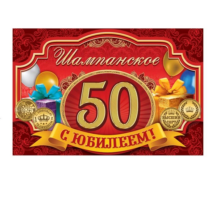 1553096 Наклейка на бутылку шампанское "С Юбилеем 50 лет!"
