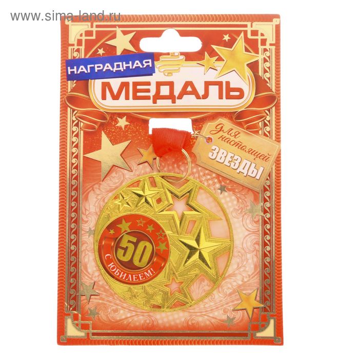 2340930 Медаль со звездами "С Юбилеем 50 лет!" Металл. Диаметр 5 см.Универсальная