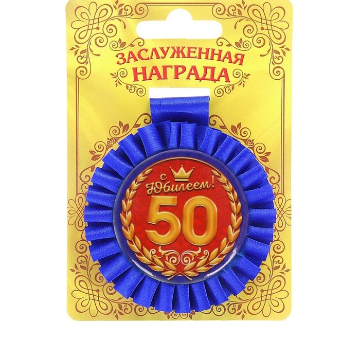 2367870 Медаль розетка синяя "С Юбилеем 50 лет!" на ленте.Диаметр 8 см.Металл