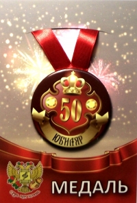 ФГ ZMET00030 Медаль металл "50 лет! Юбиляр" на атласной ленте