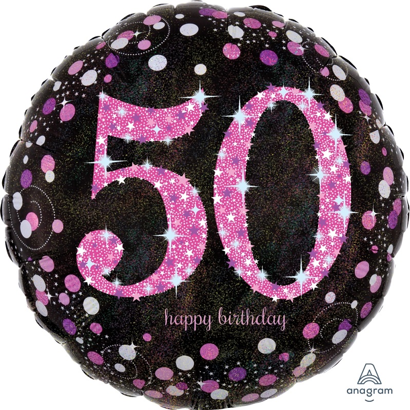 AN 33787 Фольгированный круг "Happy Birtday! 50 лет" для девочки. Диаметр 45 см. США (с гелием)