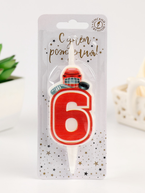 10873689 (5776) Свеча в торт "Цифра 6. Хоккей" Высота 12,5 см.
