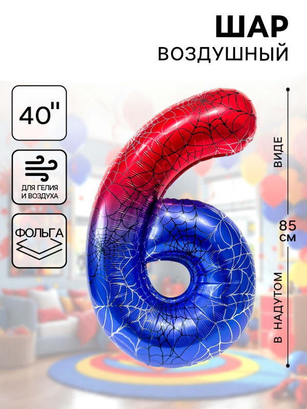 10919692 (ДБ 26976) Фольгированная "Цифра 6.Паутина" Высота 102 см.