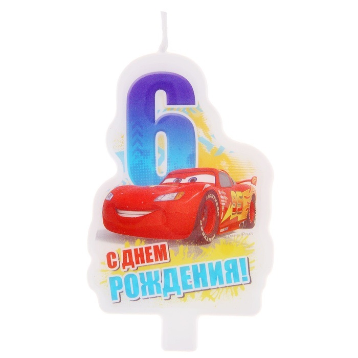 1137504 Свеча для торта "Цифра 6. Тачка"