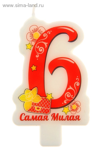 121633 Свеча для торта "Цифра 6. Самая милая". Красная