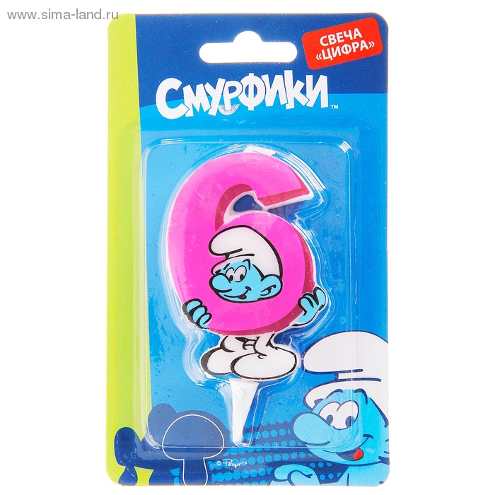 303075 Свеча для торта "Цифра 6. Смурфики"