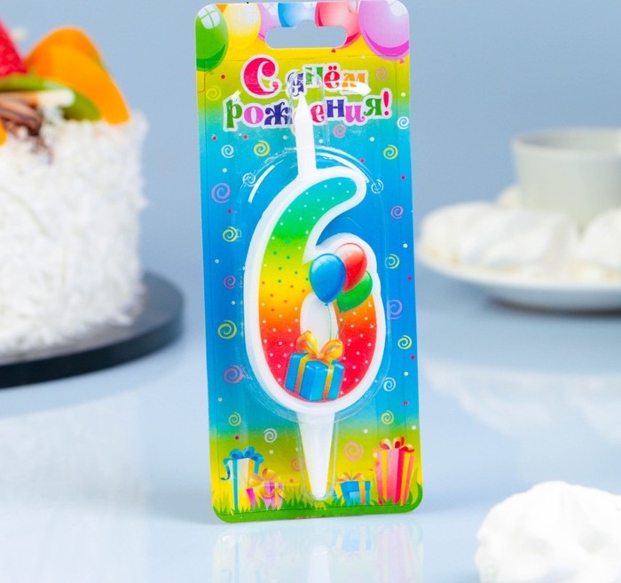4237774 (5956) Свеча в торт "Цифра 6.Подарок с шариками"