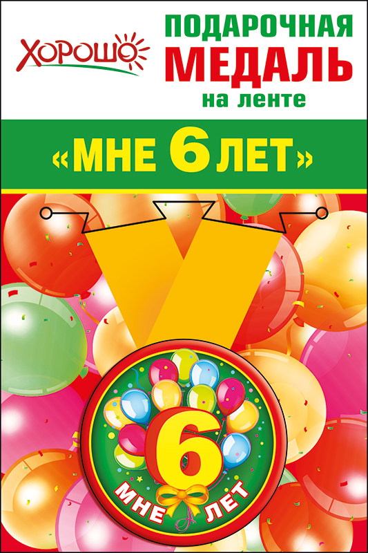 52.53.164 Медаль металл на ленте "Мне 6 лет.Воздушные шарики"