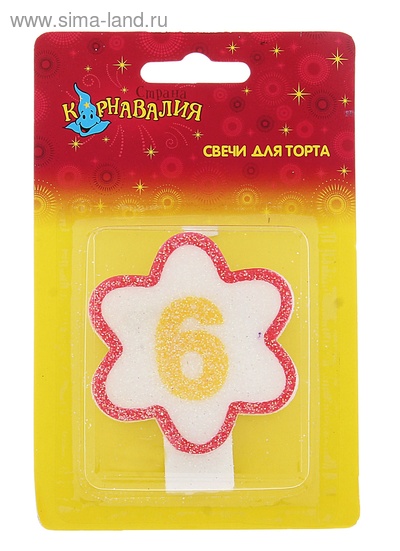 635611 Свеча для торта "Цифра 6.Цветочек с блесками"