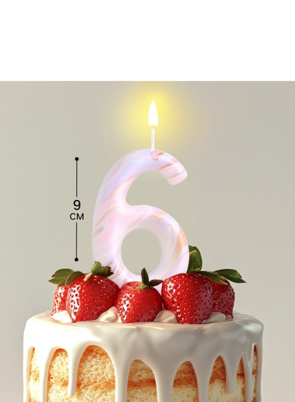 6990825 Свеча ГИГАНТ в торт "Цифра 6 Белый мрамор" Высота 9 см.