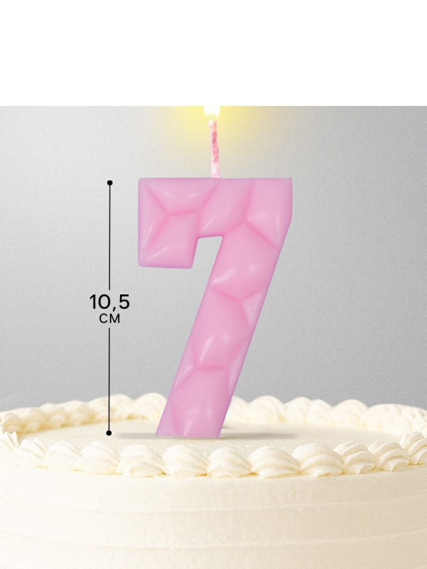 10603338 Свеча в торт "Цифра 7 Розовая" на шпажке Высота 5 см.