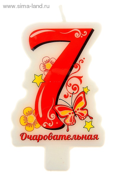 121634 Свеча для торта "Цифра 7. Очаровательная". Красная