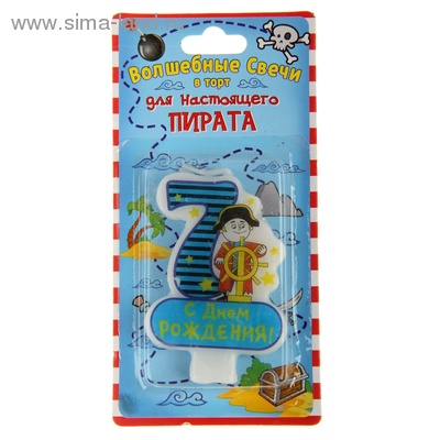 233042 Свеча для торта "Цифра 7.С Днем рождения" Пират